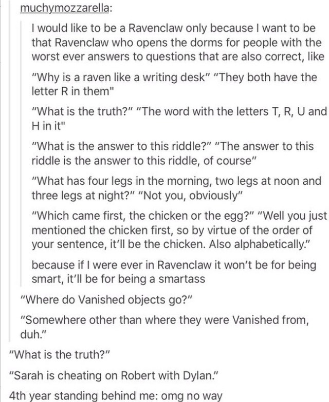 tora42 Uncategorized September 30, 2018December 10, 2018 1 Minute sarcasticornflake: RAVENCLAW PRIDE Share this: Share on X (Opens in new window) X Share on Facebook (Opens in new window) Facebook Like Loading... Related Published by tora42 View all posts by tora42 Published September 30, 2018December 10, 2018