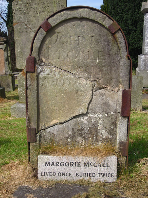 After succumbing to a fever of some sort in 1705, Irish woman Margorie McCall was hastily buried to prevent the spread of whatever had done her in. Margorie was buried with a valuable ring, which her husband had been unable to remove due to swelling. This made her an even better target for body snatchers, who could cash in on both the corpse and the ring.