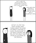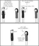 Thanksgiving is coming up, and I’ve found that Printing out this comic, stapling it into a little book and leaving it in “gift bags” (Be sure to inculde something genuinely nice, like the remaining Zucchini bread) for visiting relatives of dubious social graces made thanksgiving go a whole lot easier.