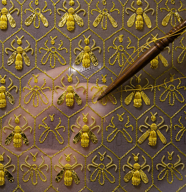 – Sylvie Deschamps, Maître d’art, handcrafts “The Festive Attire”, “L’Habit de Fête”, a covering designed as an imperial coronation robe.