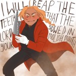 When you finally realize maybe you lost that bet after all but you can’t just tell him you love him because you’ve destroyed your credibility on that subject especially and besides you already killed his sister and that’s bound to be awkward
