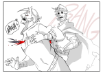 Gah, she had the amazing idea of Al braiding Ed’s hair and slowly he starts using more and more obnoxious scrunchies without Ed knowing. We decided a cat elastic would be very fitting ;3 I loved drawing it and got so excited I even put in the surprise cat background hehe.