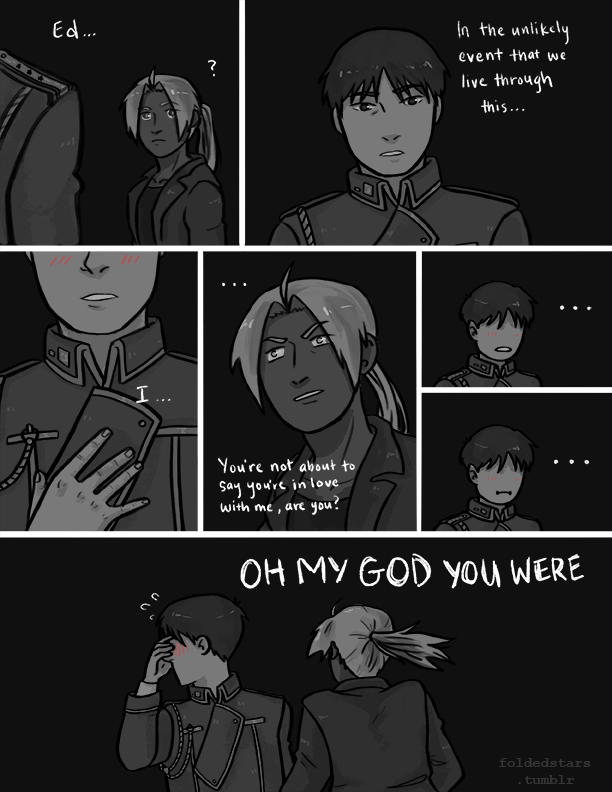 Roy Mustang is a man of such innumerable talents that most of them don’t even receive any attention—which is a good thing these days, since lately one of his best-honed skills is surreptitiously ogling Edward Elric.