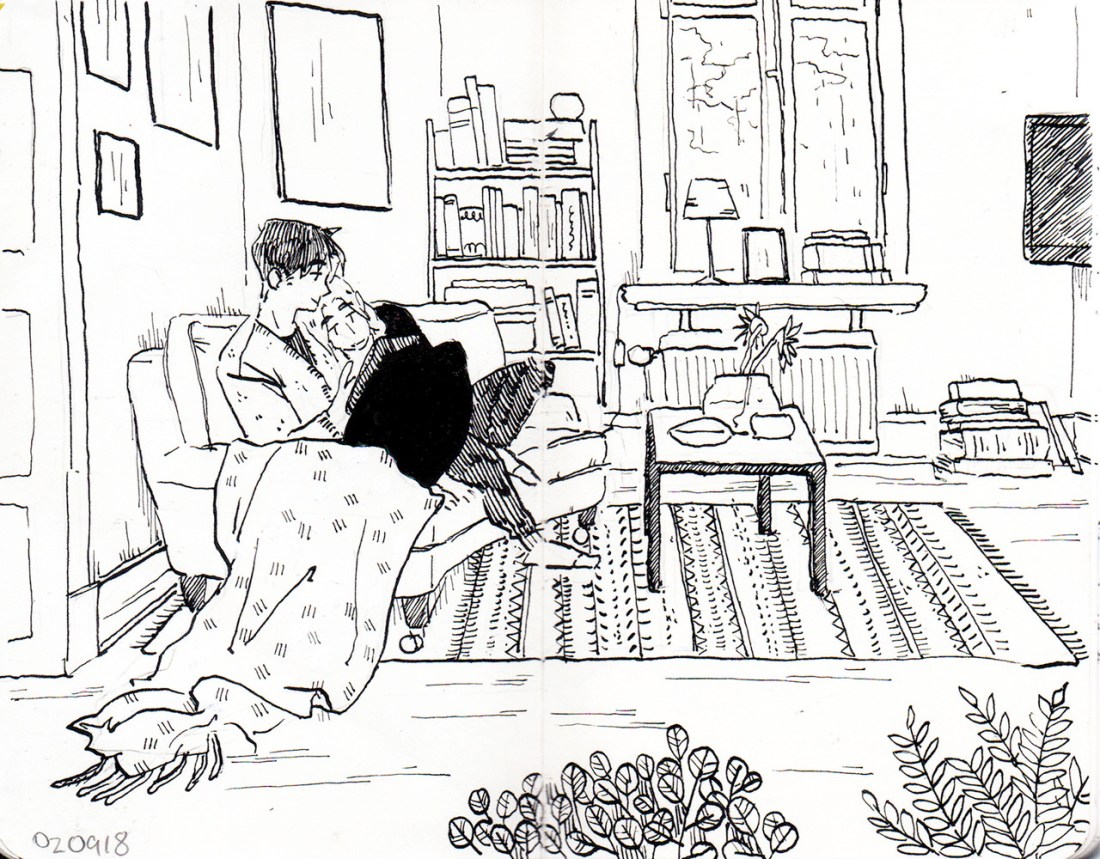 * invites him over even though he really hasn’t cleaned up and he’s tracked in the detritus of the yardwork from earlier, but he knows that if he waits until he feels like he can impress Roy, he’ll never make a move. They sit in the shade and they talk and Roy picks up the book Ed was reading and Ed gets another beer and sits down next to him, a little nervous, but it’s too hot to really shiver even inside, so he just kind of doesn’t
